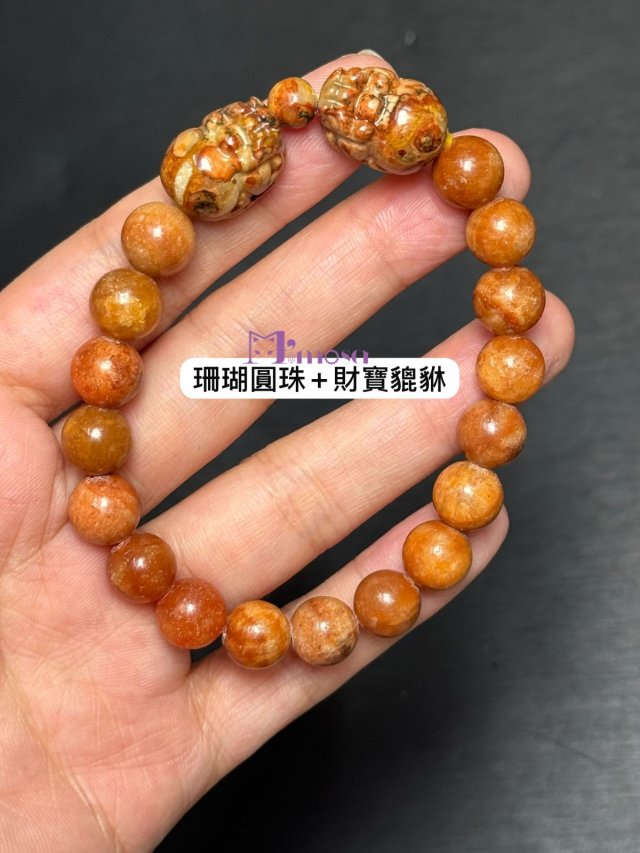 珊瑚圓珠9mm + 12mm有求必應貔貅