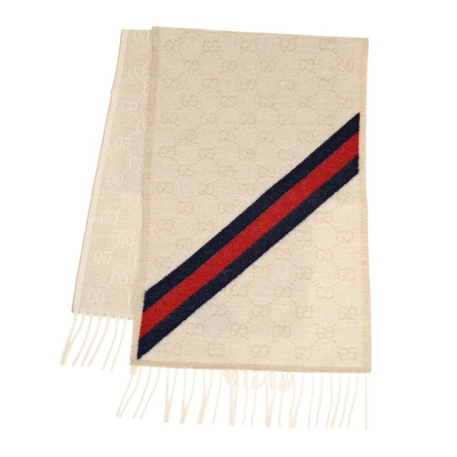 M108 GUCCI 流蘇雙G織花羊毛圍巾 (570603 3G200 9568 米色)