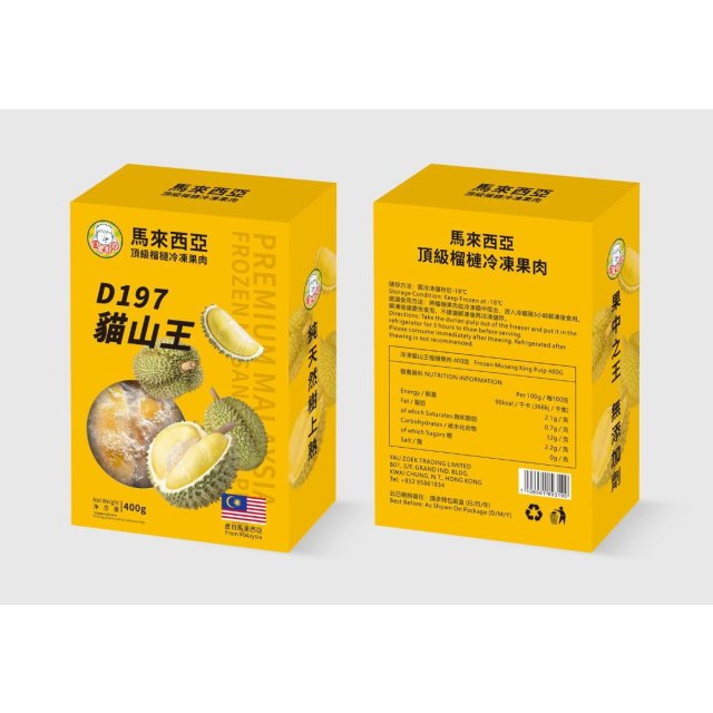 A3 急凍 貓山王 榴槤果肉 400g
