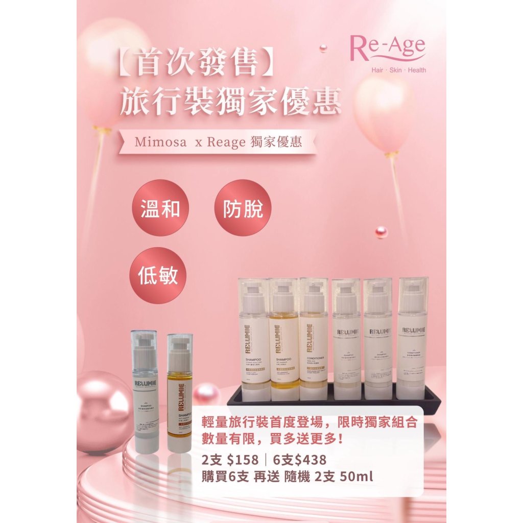 Reage 旅行裝洗頭水護髮素 100ml (貨期大約兩星期)