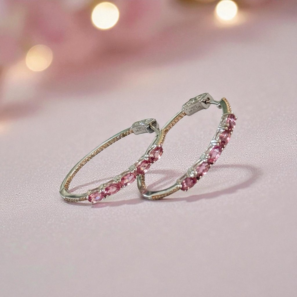 價格待定- A 粉紅碧併香檳鑽耳環 (S925)