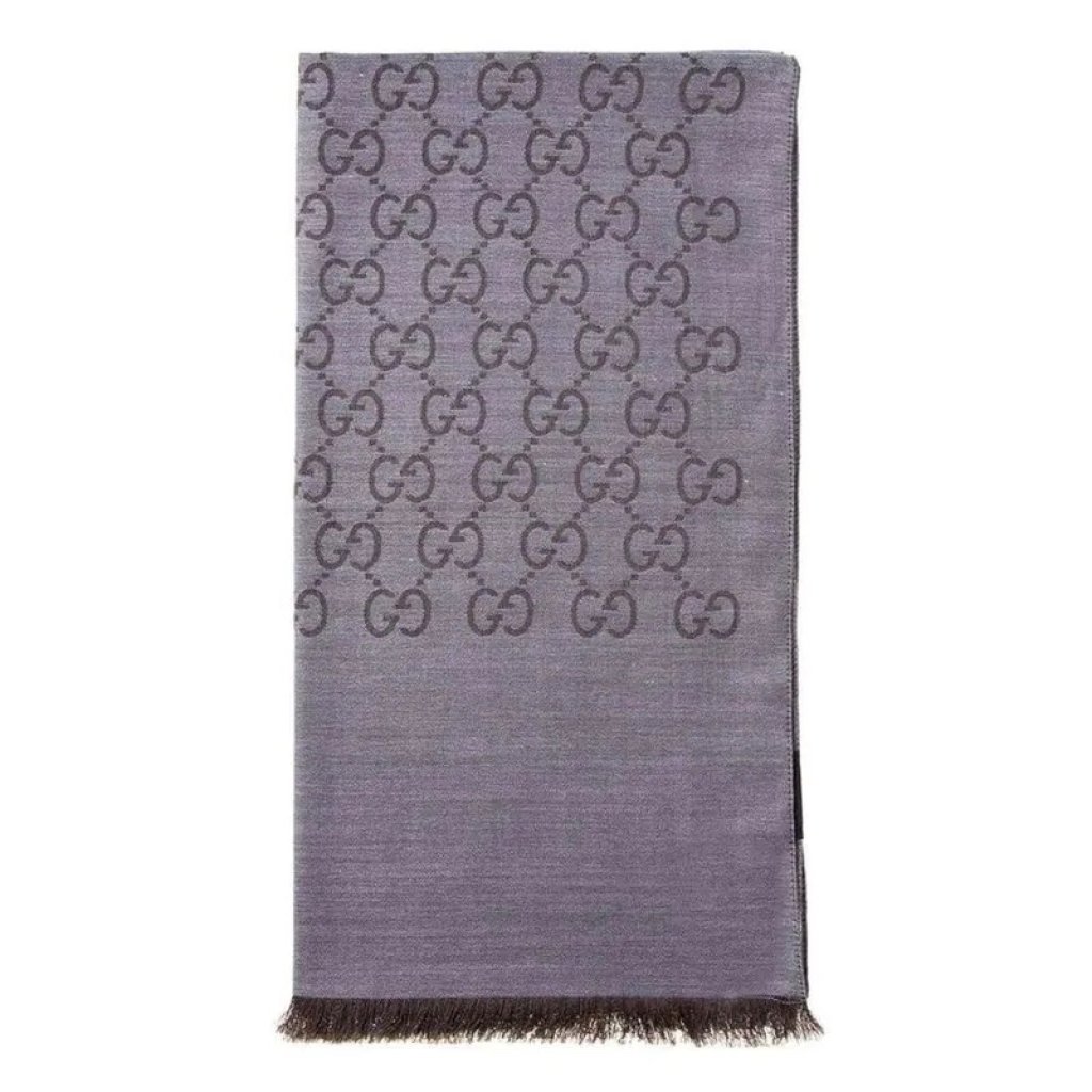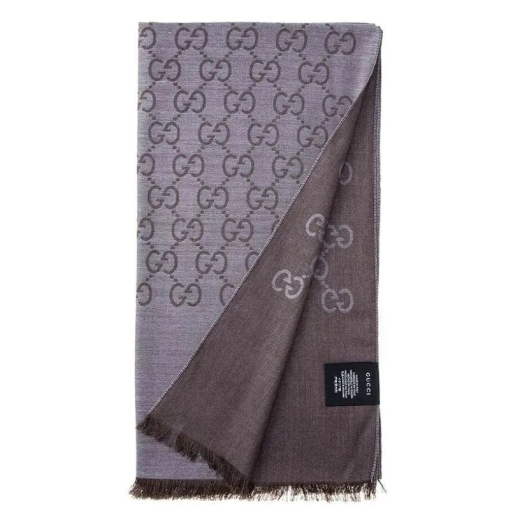 M101 GUCCI 羊毛真絲圍巾(165904 3G646 1264 棕灰色)