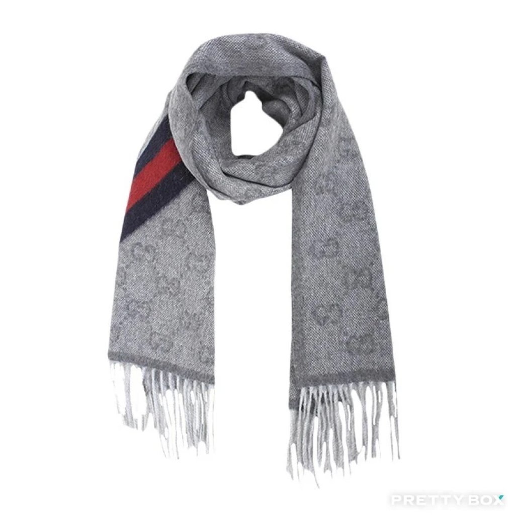 M106 GUCCI 流蘇雙G織花羊毛圍巾 (570603 3G200 1768 灰色)