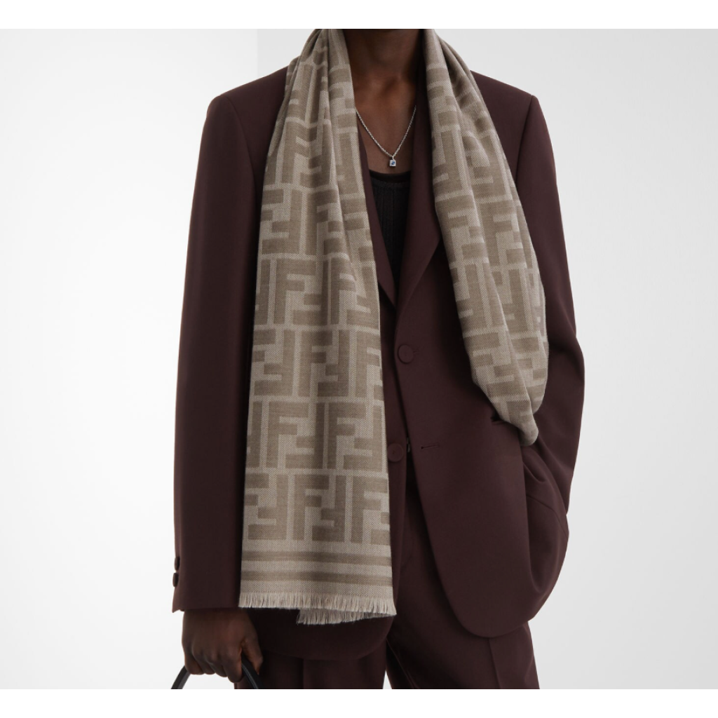 M111 FENDI 鴿子灰色FF提花圍巾 (FXS460ASNAF0VC9)